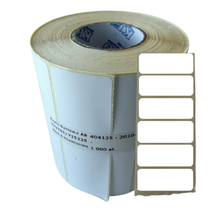 / Webbshop / KEYFO Shop / Förbrukning - Etiketter - Transferfolie - Armband - Kvittorullar - Kort / Etiketter DT, KEYFO / Etikett DT 43×18 3000/rle, MBE 4 rlr